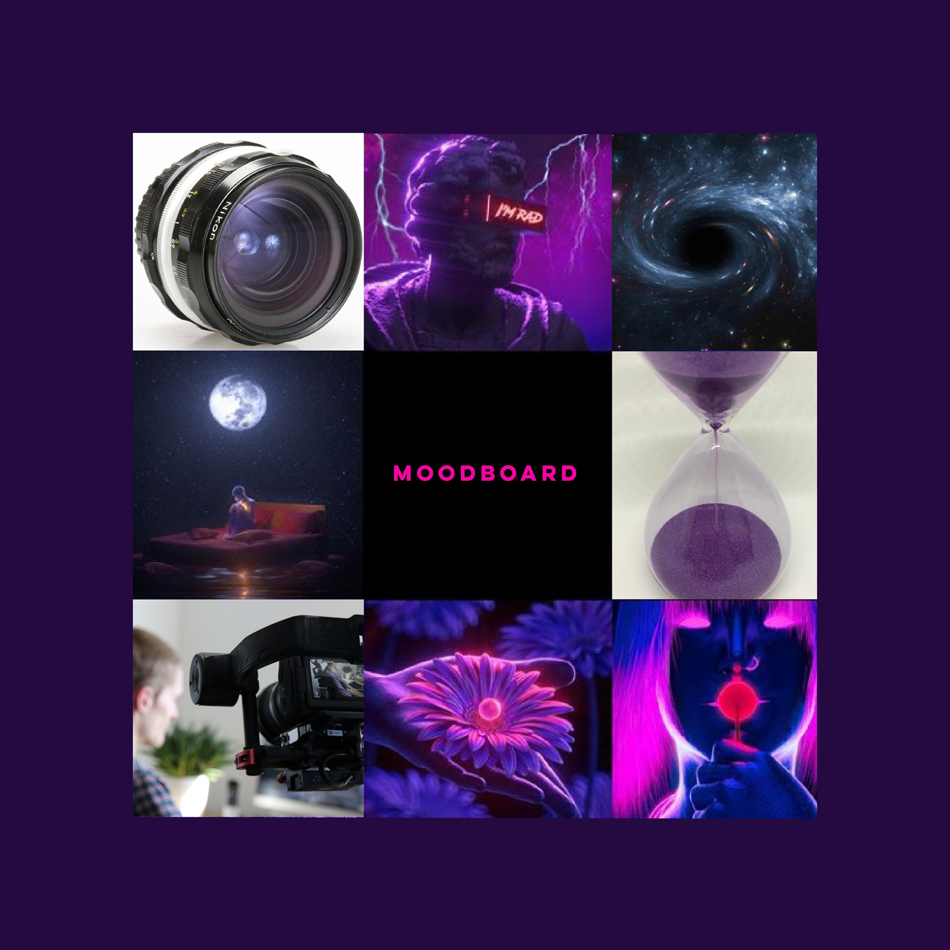 As cores vem da inspiração em neon sci-fi e vaporwave que o Muriel carrega com ele.